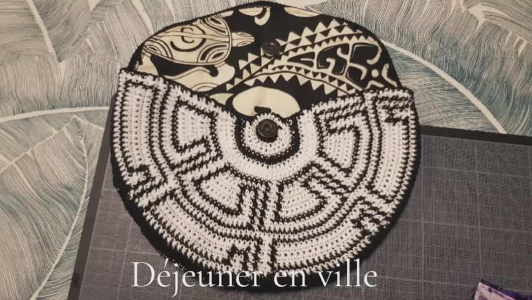 Pochette en coton noir et blanc doublée de tissu polynésien – L’accessoire chic pour un déjeuner en ville.
